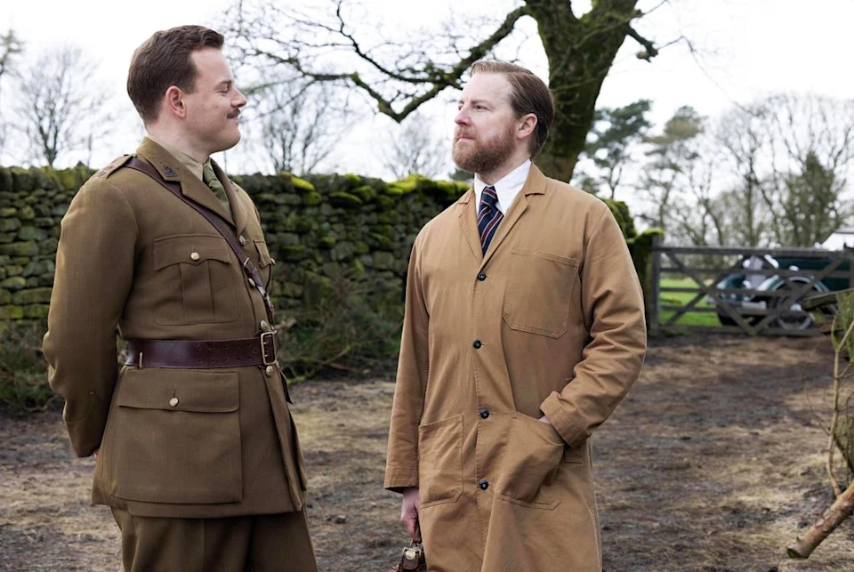 One of the biggest highlights of the upcoming season is Tristan’s return, who was absent in series four while serving in the war effort. A touching image captures Siegfried and his younger brother reuniting, promising to melt hearts as the usually stoic vet practice owner shows his softer side upon Tristan’s return from the Royal Army Veterinary Corps.