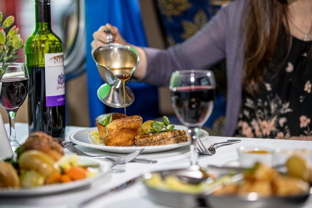 That’s right! You can enjoy a three-course Christmas meal served aboard the North Yorkshire Pullman carriages or the MK1 standard carriage No. 4817. You can choose your preferred carriage during the booking process.
