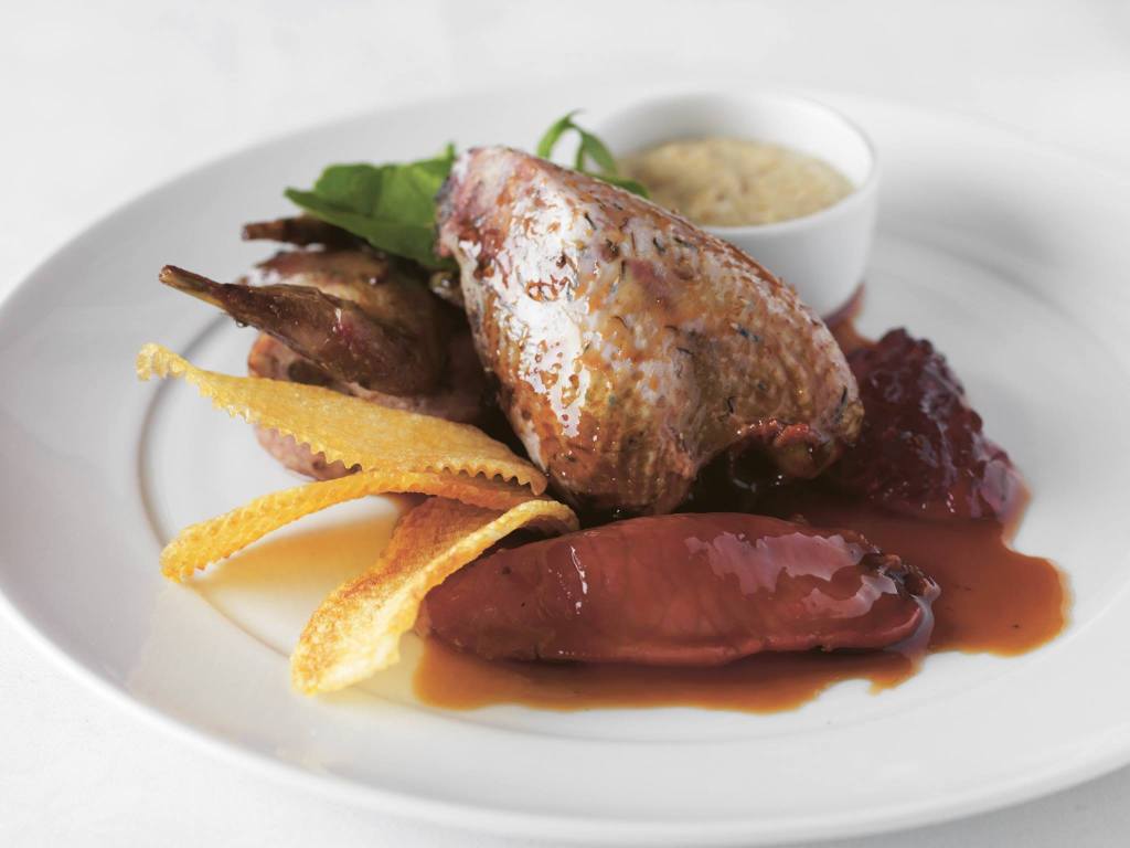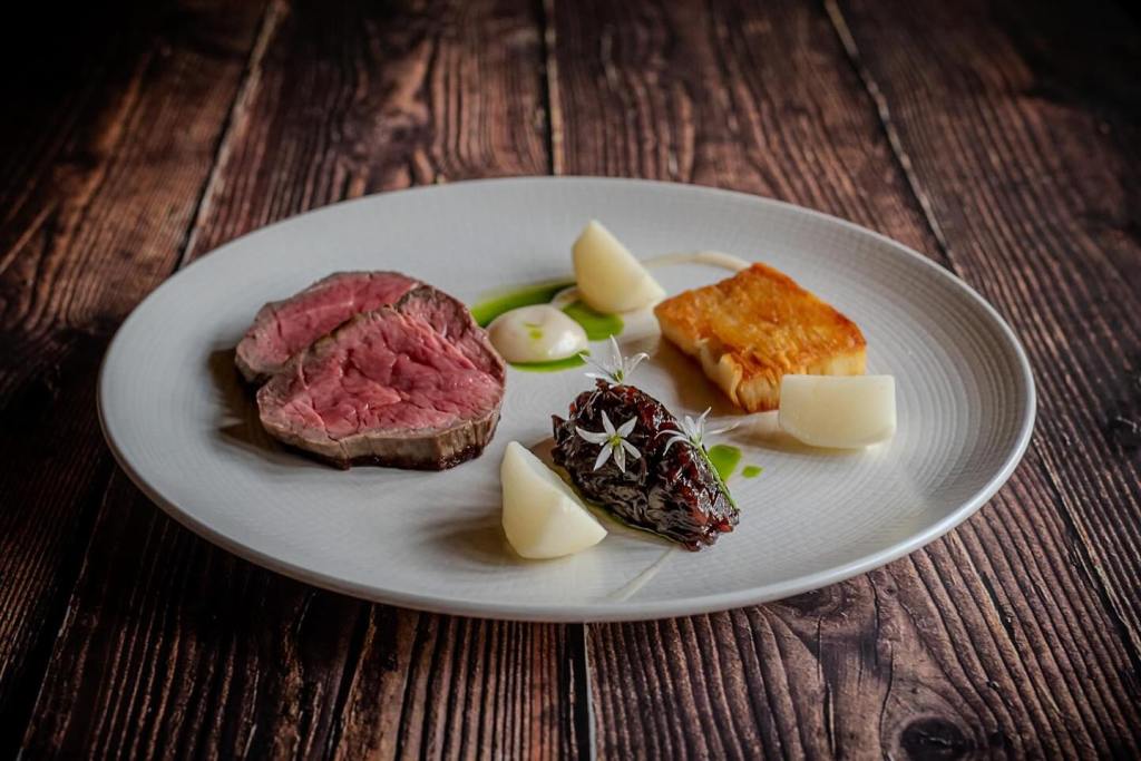 “Menu highlights have included slow-cooked crispy shoulder of lamb with mutton and kidney faggot, lamb belly boulangere, butternut squash, redcurrants and barley; Yorkshire game and pistachio terrine with pickled pear, raisins, mulled wine jelly, pistachio crisps and game ‘tea’; and braised onion with mushroom and Cheddar ‘rarebit’ with leeks, smoked baby onions, hazelnuts and soubise cream.