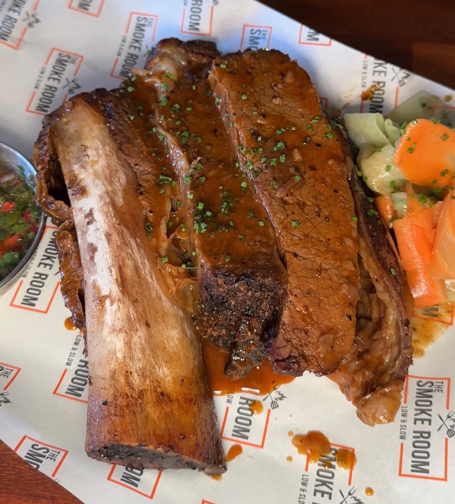 The beef rib was incredibly tender and flavourful, with perfect burnt ends that had the intense flavour of the pit smoke and were great for a bit of crunch. The meat from the short rib literally fell off the bone. And the chimichurri added a nice freshness to the rich flavours, making for the perfect combo.